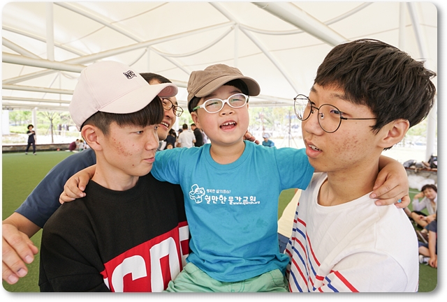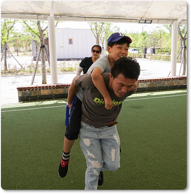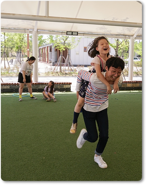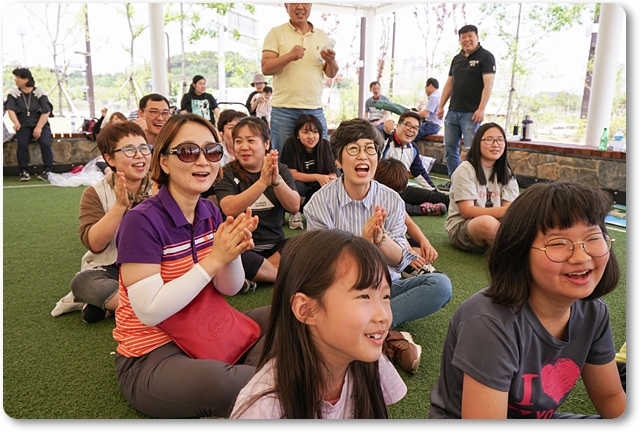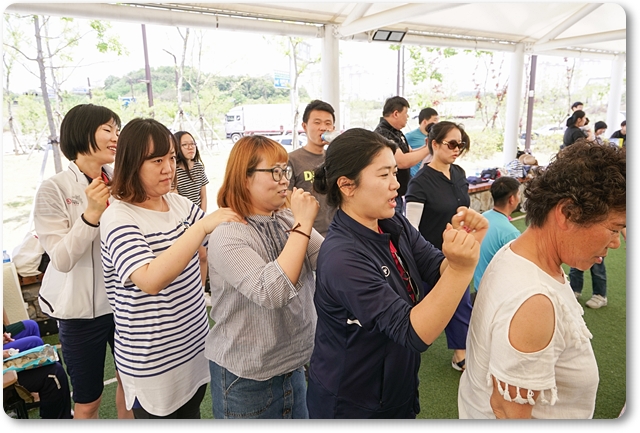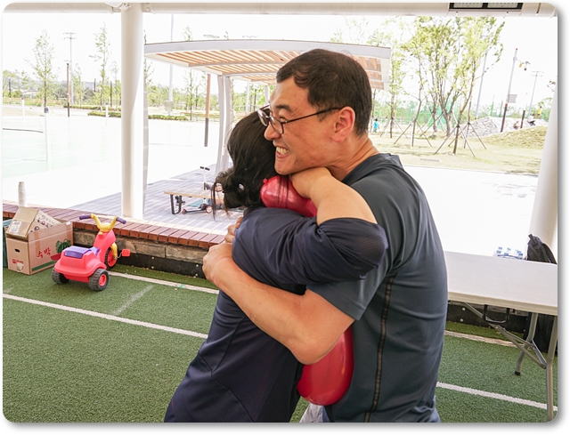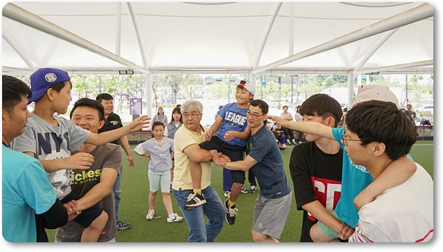 가운데 오늘은 동네 야외체육공원 서 예배를 드리고 함께 즐거운 레크레이션과