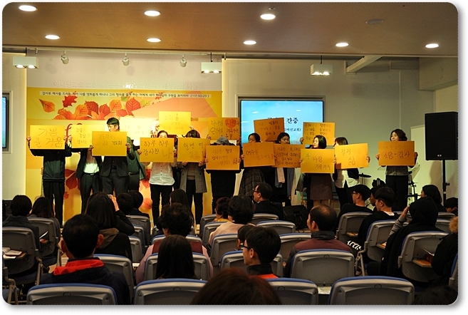 귀한 시간을 위해 남선교회 대청소, 여선교회 음식 준비, 그리고 사행시를 함께 준비하고