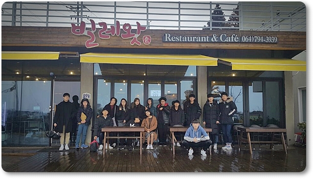 첫째날: 김포공항출발 - 줄서서먹는 놀멘해물라면 점심 - 지드래곤카페구경 - 맨도롱또똣드라마촬영지 구경 - 해안도로 도보여행 - 중문단지 박물관은 살아있다 - 서귀포 쌍둥이 회센타 저녁 - 제주성안교회수양관