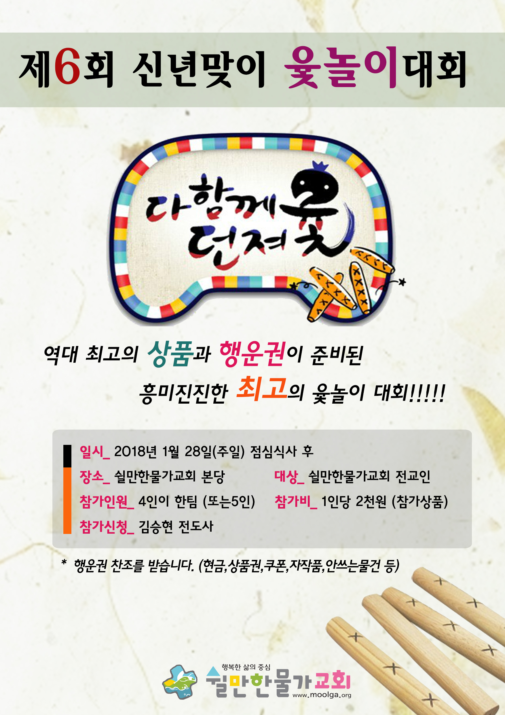 2018년도 신년을 맞아 윷놀이 대회가 있습니다. 함께 신명나는 교제의 시간이