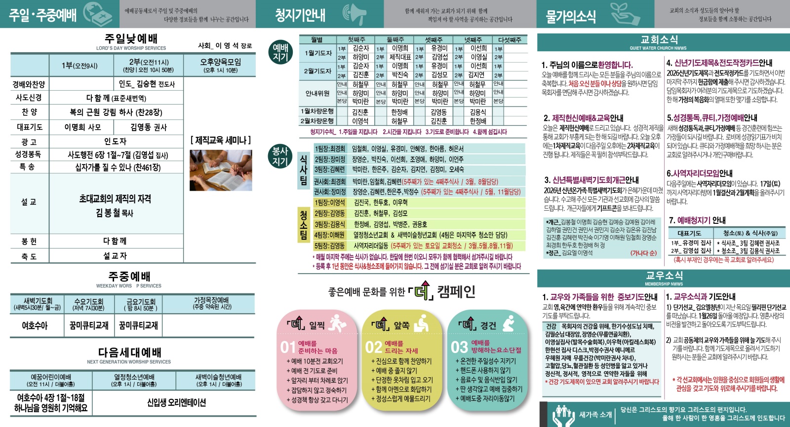 | 다음글 | 2026.1.4주일주보(신년주일) | 김봉철 | 2026.01.04 | 0 | 156 |