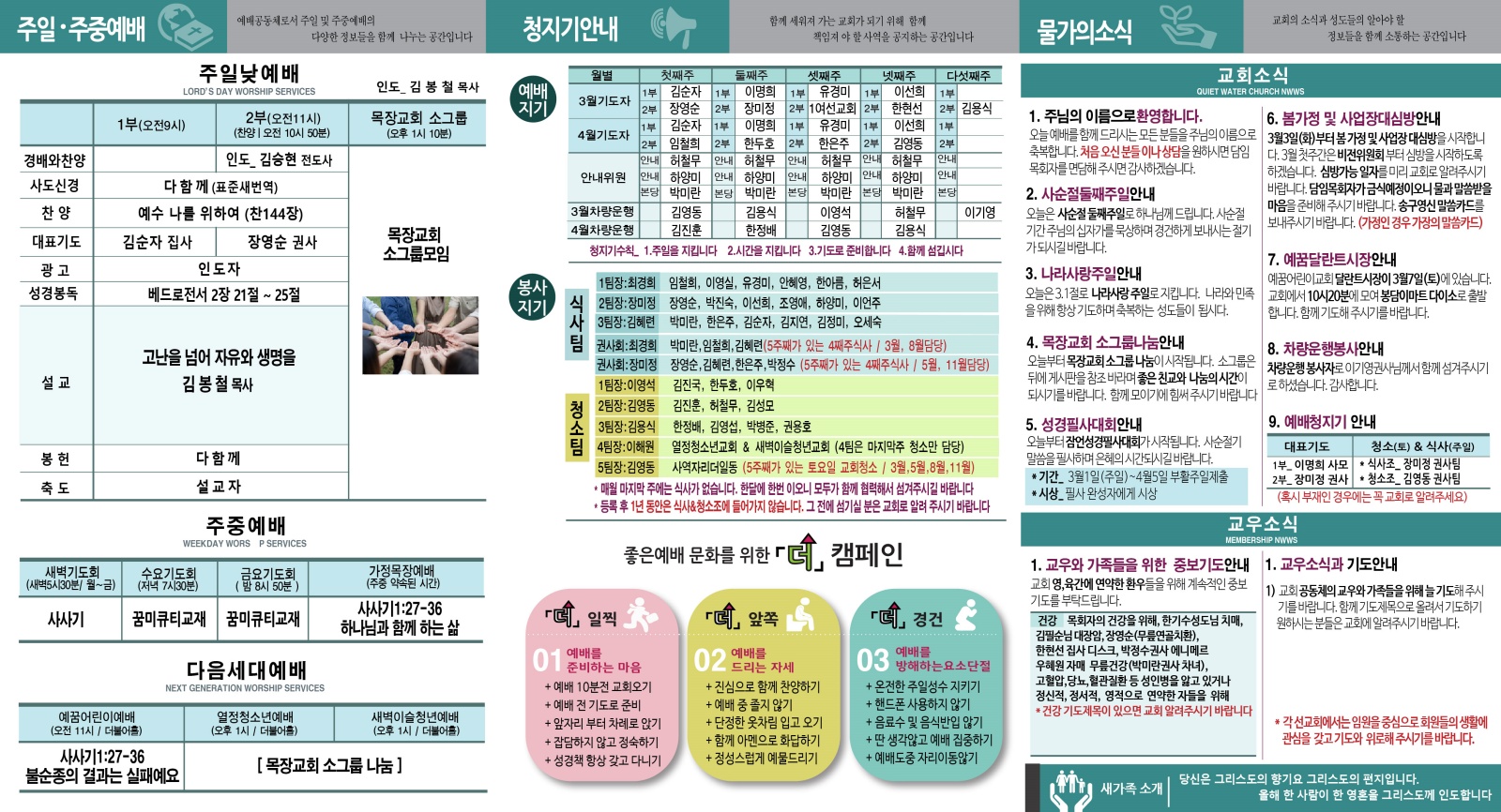 | 이전글 | 2026.3.8주일주보(사순절셋째주일) | 김봉철 | 2026.03.08 | 0 | 56 |